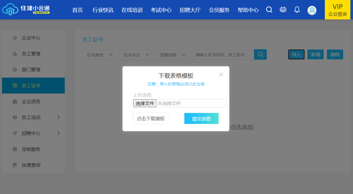 证书导入必须按照表格模板格式填写数据,否则数据导入失败