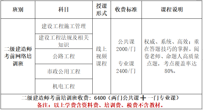 二、我司现推出二级建造师考前培训班,欢迎前来报名。